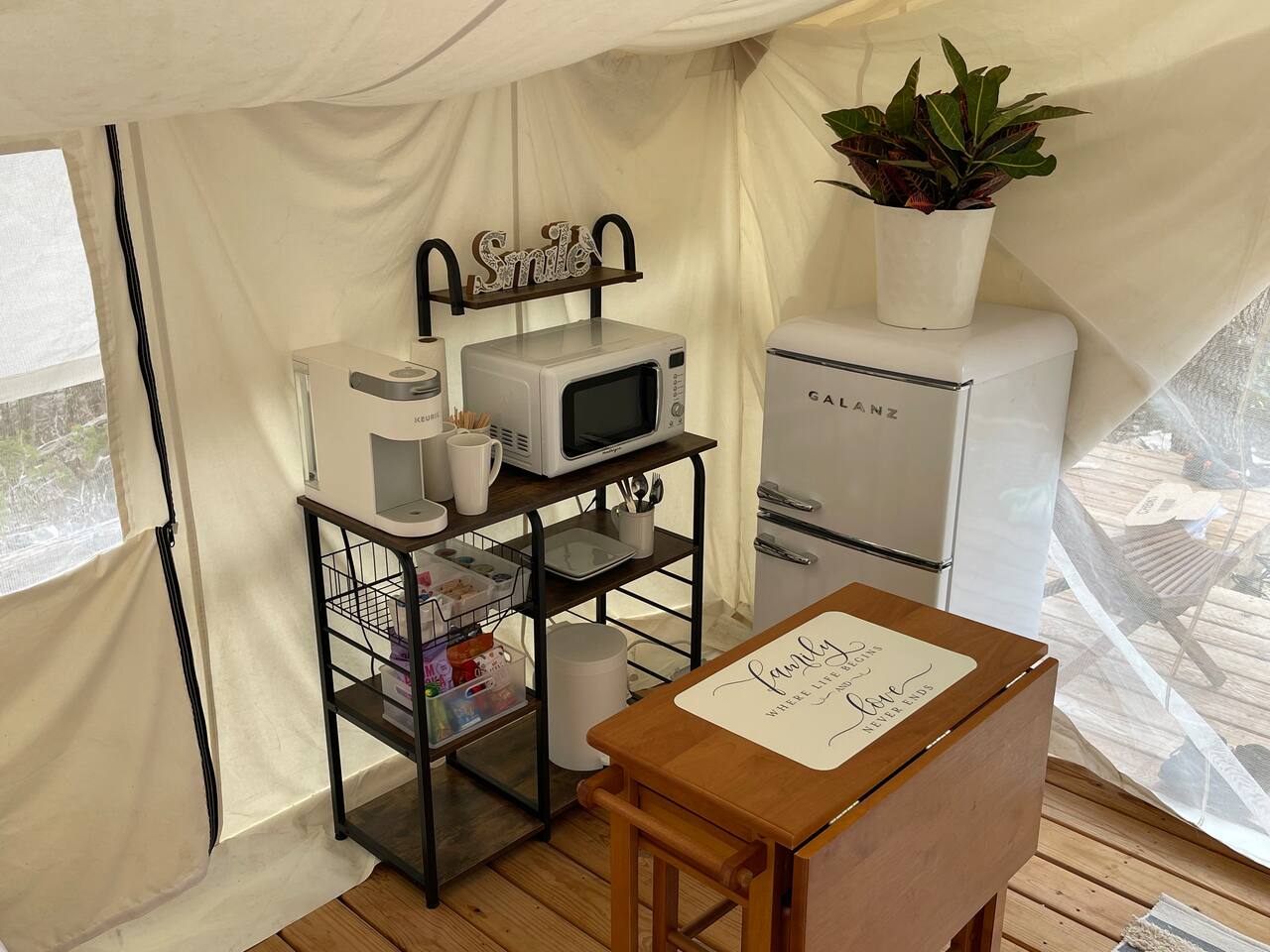 Everything about the tent’s accommodations was absolutely perfect! The tent had beautiful views, and I had such an amazing time disconnecting. Genieve and her family were wonderful hosts and so friendly. I'm already looking to see when I can come back!